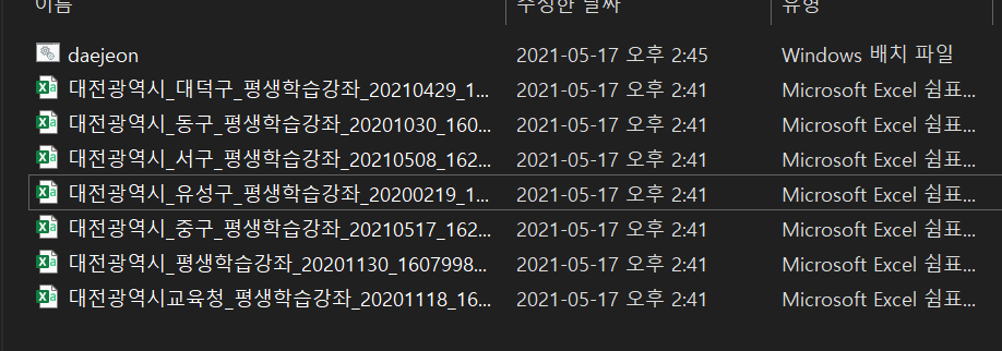 1행을 제외한 나머지 행들을 지워준다.(Ctrl + -(마이너스키))