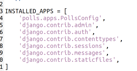 현재 프로젝트에게 polls 앱이 설치되어 있다는 것을 알려야 합니다.
