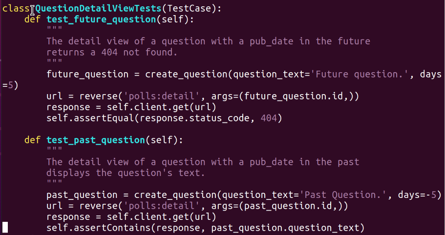 pub_date필드가 미래에있는 질문 까지도 포함하여 게시합니다. 이것을 개선 해야합니다. 미래로 pub_date를 설정하는 것은 그 시기가 되면 질문이 게시되지만 그때까지는 보이지 않는 것을 의미 해야 합니다