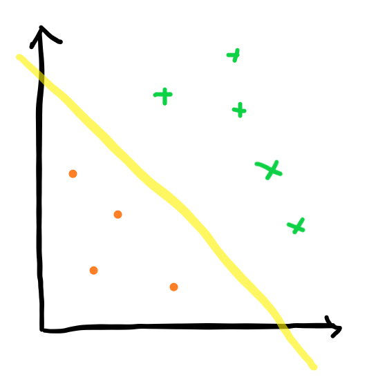 1. SVM 작동원리 데이터를 가장 잘 구분하는 최적의 하이퍼플레인을 찾는 알고리즘 * 기본조건을 만족하는 하이퍼플레인은 무수히 많을 수 있음 → 하이퍼플레인 최적 판단 기준 필요 각 클래스 데이터가 하이퍼플레인에서 최대한 멀리 떨어져있게!! Margin이 최대가되게! 조건: 클래스를 구분 yi(w∗xi+b)>=1을 만족 목적: ||w|| 최소 완화된 조건 힌지 손실, Soft SVM 2. 다중클래스 SVM 클래스 별로 해당클래스와 그 외의 것을 가르는 하이퍼플레인 찾기 1) 일대다 방법: 한 분류기 학습시킬 때 전체데이터 사용, K(K-1)/2 2) 일대일 방법: 대상이 되는 두 클래스에 속하는 데이터만 사용, K 3. Kernel in SVM 비선형문제 → 특성공간 변환 RBF커널
